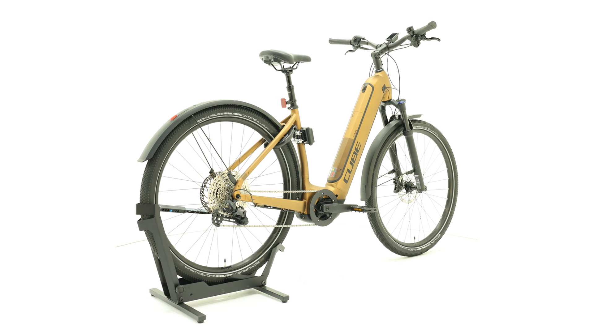 Découvre le super polyvalent Nuride Hybrid EXC 625 Allroad d' Cube, un vélo de randonnée électrique qui est parfait pour la ville, les balades et les chemins de campagne. Avec son moteur Bosch Performance Line CX (85 Nm) et sa batterie PowerTube intégrée de 625 Wh, il a une autonomie qui déchire. Le cadre en aluminium Superlite combine une géométrie confortable avec une technologie entièrement intégrée, tandis que la suspension avant de 100 mm assure un confort de conduite plus détendu, même sur des terrains faciles. Avec la transmission Shimano Deore à 12 vitesses, les freins à disque hydrauliques et les accessoires tout-terrain résistants aux intempéries tels que les garde-boue, l'éclairage et la béquille latérale, ce vélo est prêt à l'emploi pour un usage quotidien et les randonnées. Idéal pour les navetteurs, les cyclistes amateurs et les amateurs de randonnées qui recherchent la qualité, le style et la polyvalence.