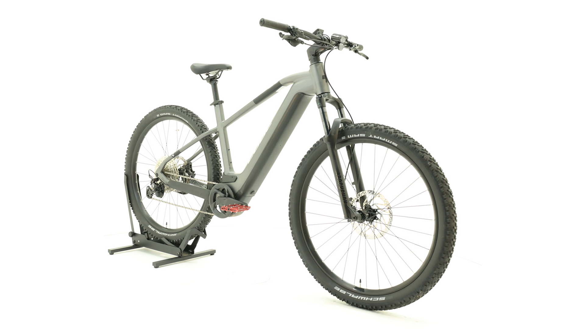 Le Cube Reaction Hybrid Race est un VTT électrique hardtail polyvalent avec une unité d'entraînement Bosch CX élégamment intégrée (85Nm) et une batterie PowerTube de 750Wh pour des performances et une autonomie puissantes. Le cadre léger en aluminium Superlite avec géométrie Agile Ride, passage interne des câbles et axe Boost 148 allie confort et stabilité. Équipé d'une fourche pneumatique RockShox (100-120mm), d'une transmission Shimano XT 12 vitesses, de freins à disque hydrauliques et de pneus Schwalbe 2,6″, il convainc sur les trails et les allroads - une combinaison parfaite d'agilité, de puissance et de fiabilité.