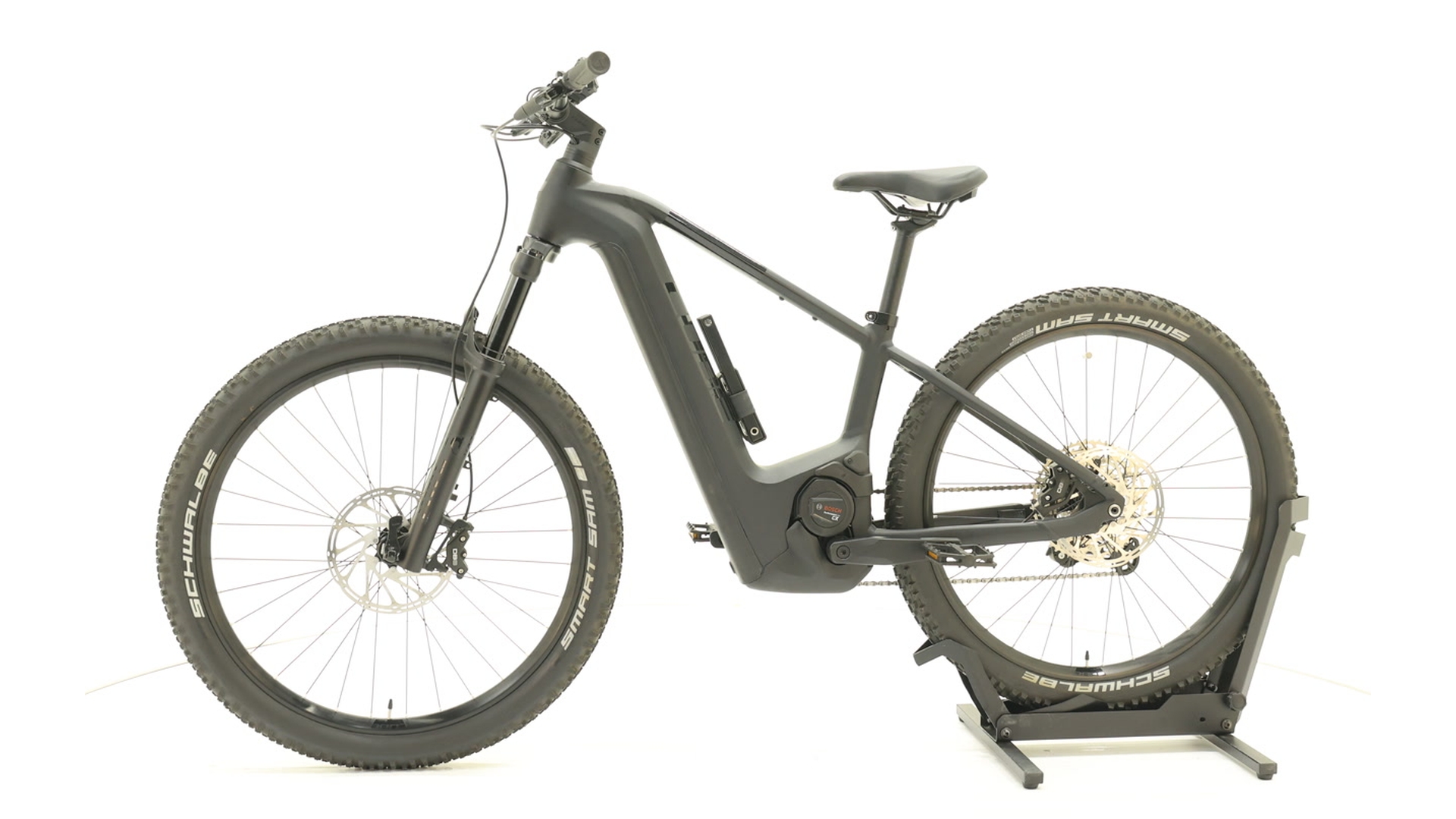 Cadre Aluminium Superlite, moulage par gravité, géométrie Agile Ride, tube de direction 1,5, Boost 148, batterie complètement intégrée, acheminement interne avancé des câbles, points de fixation pour béquille/garde-boue/porte-bagages