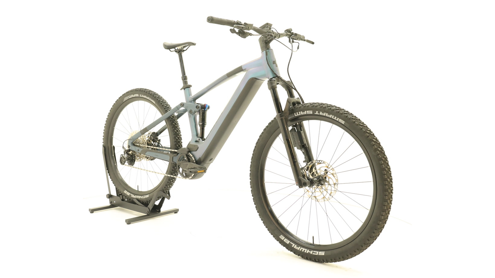 Cadre Aluminium Superlite, technologie de moulage par gravité, contrôle efficace du confort, FSP 4-Link, géométrie Agile Comfort, Boost 148, batterie complètement intégrée, acheminement interne avancé des câbles, points de fixation pour béquille/garde-boue/porte-bagages