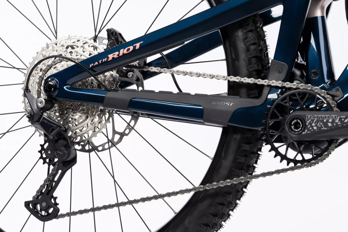 Le Ghost Path Riot Advanced est un fully abordable qui n'a pas l'air d'avoir de moteur. Equipé d'un moteur électrique Fazua discret, le vélo facilite les montées, mais en raison de son faible poids, il offre une maniabilité ludique en descente. Il se caractérise par un cadre en carbone robuste et des éléments de suspension Rockshox avec 160 mm de débattement à l'avant et 140 mm à l'arrière. Une batterie de 480Wh te fournit suffisamment de puissance pour les longues randonnées, tandis que les pneus sans chambre à air avec Tire Noodles offrent une adhérence optimale et une protection contre les crevaisons. La construction innovante du cadre Traction Link assure une adhérence et une stabilité parfaites. Le mélange idéal de performance et de prix avec le Path Riot Advanced !