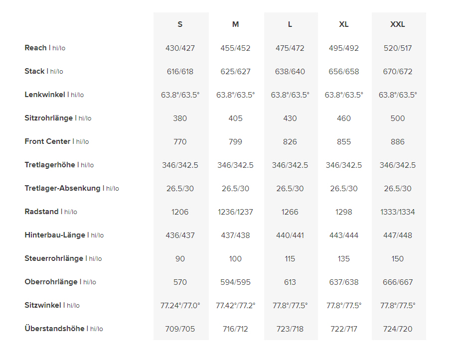 L'angle d'assise relativement raide et la géométrie dépendant de la taille confirment son aptitude à la randonnée et sa bonne réputation d'arme équilibrée et agressive pour les courses d'enduro, les randonnées exigeantes et le plaisir dans les bike parks.